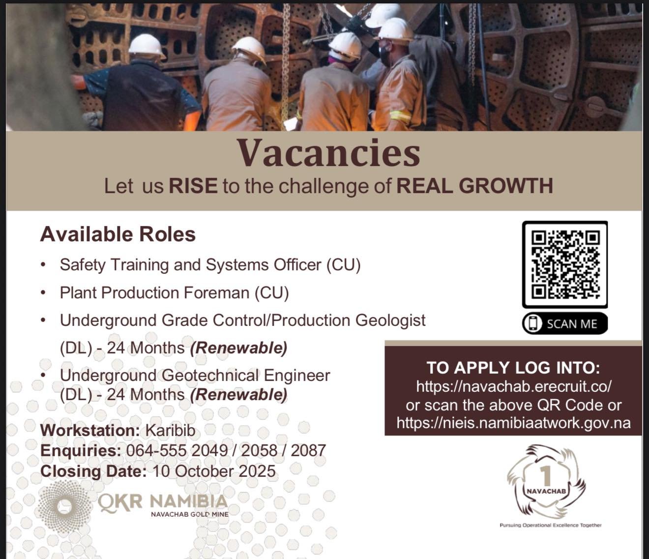 Are you ready to take your career to the next level? QKR Namibia Navachab Gold Mine is looking for passionate, driven individuals to join our team.